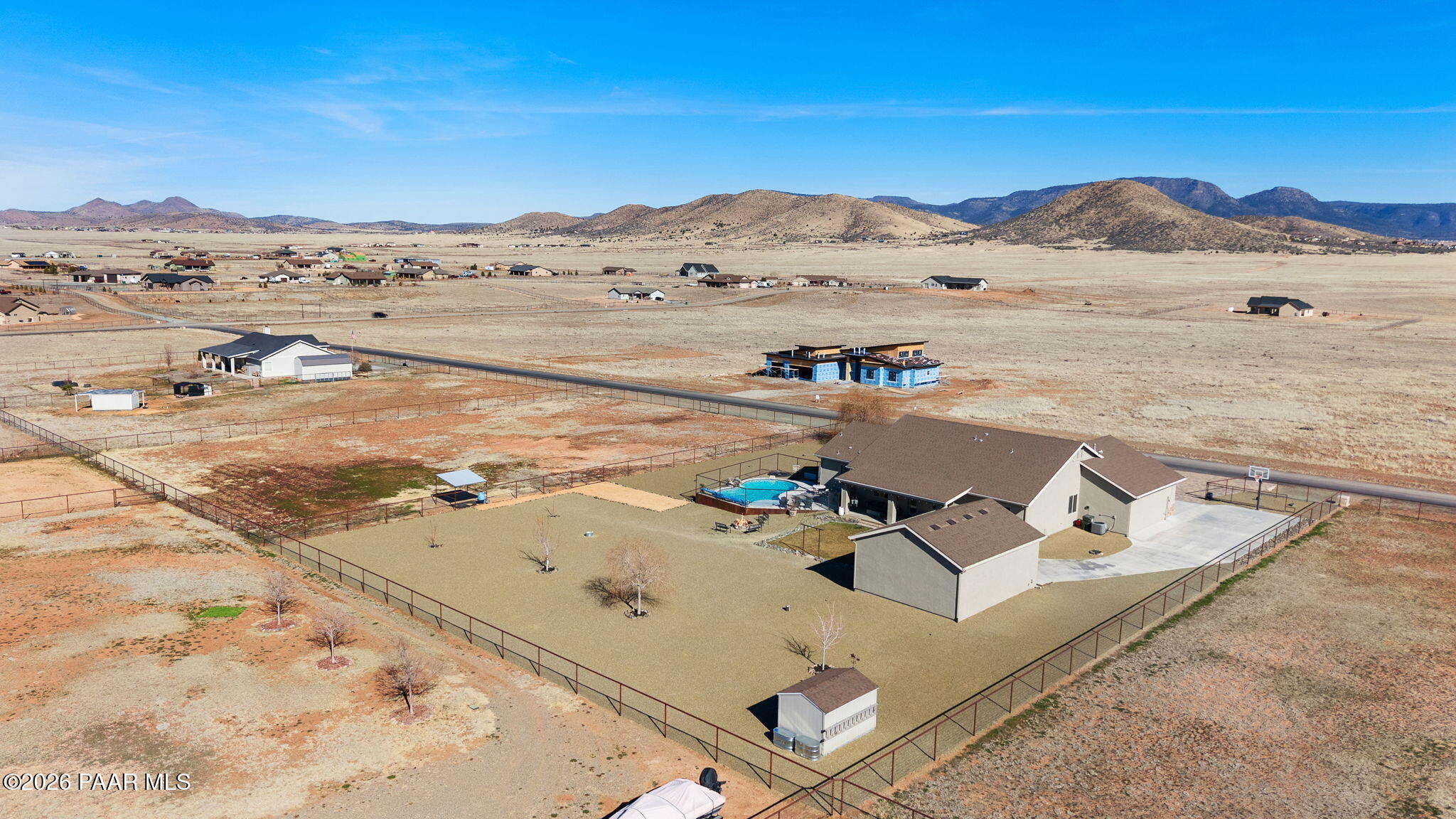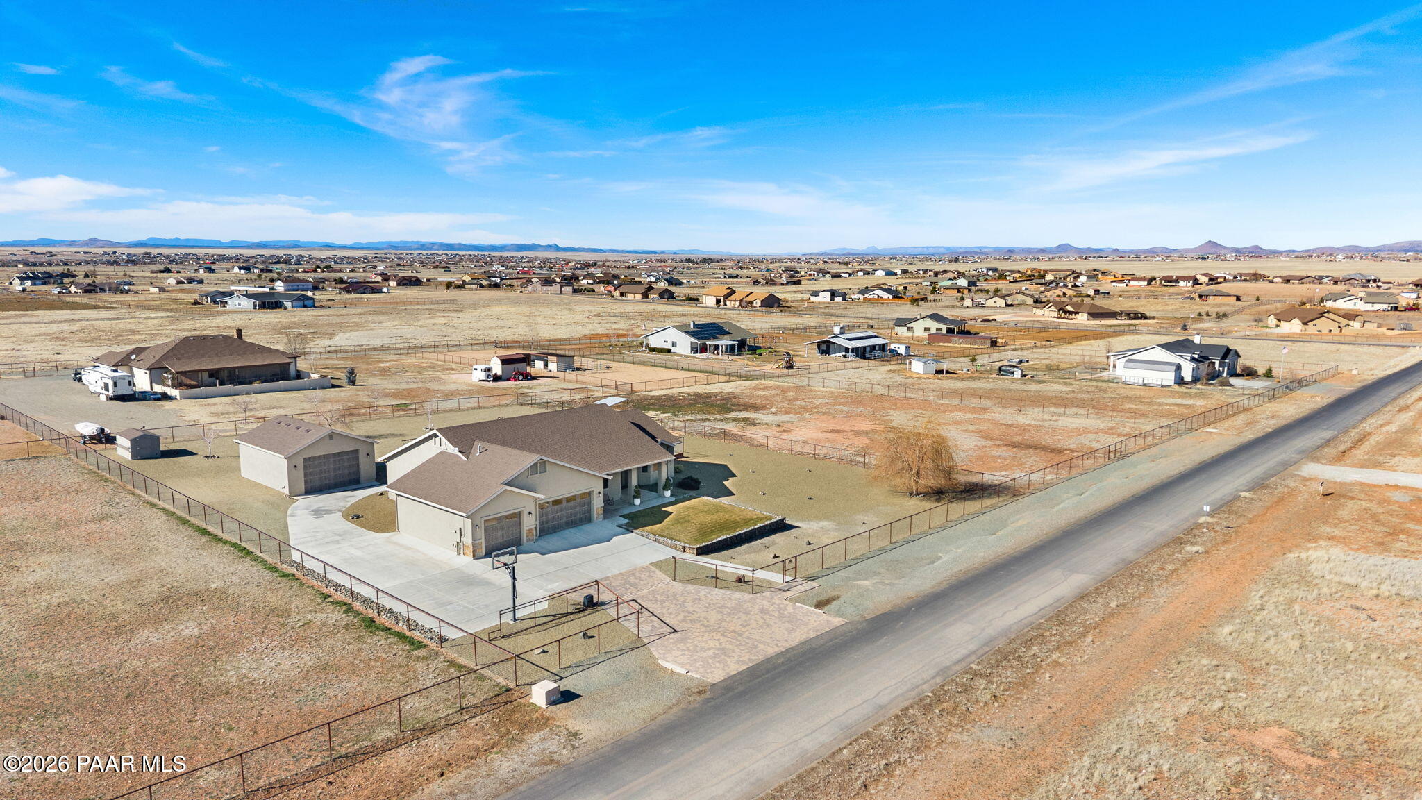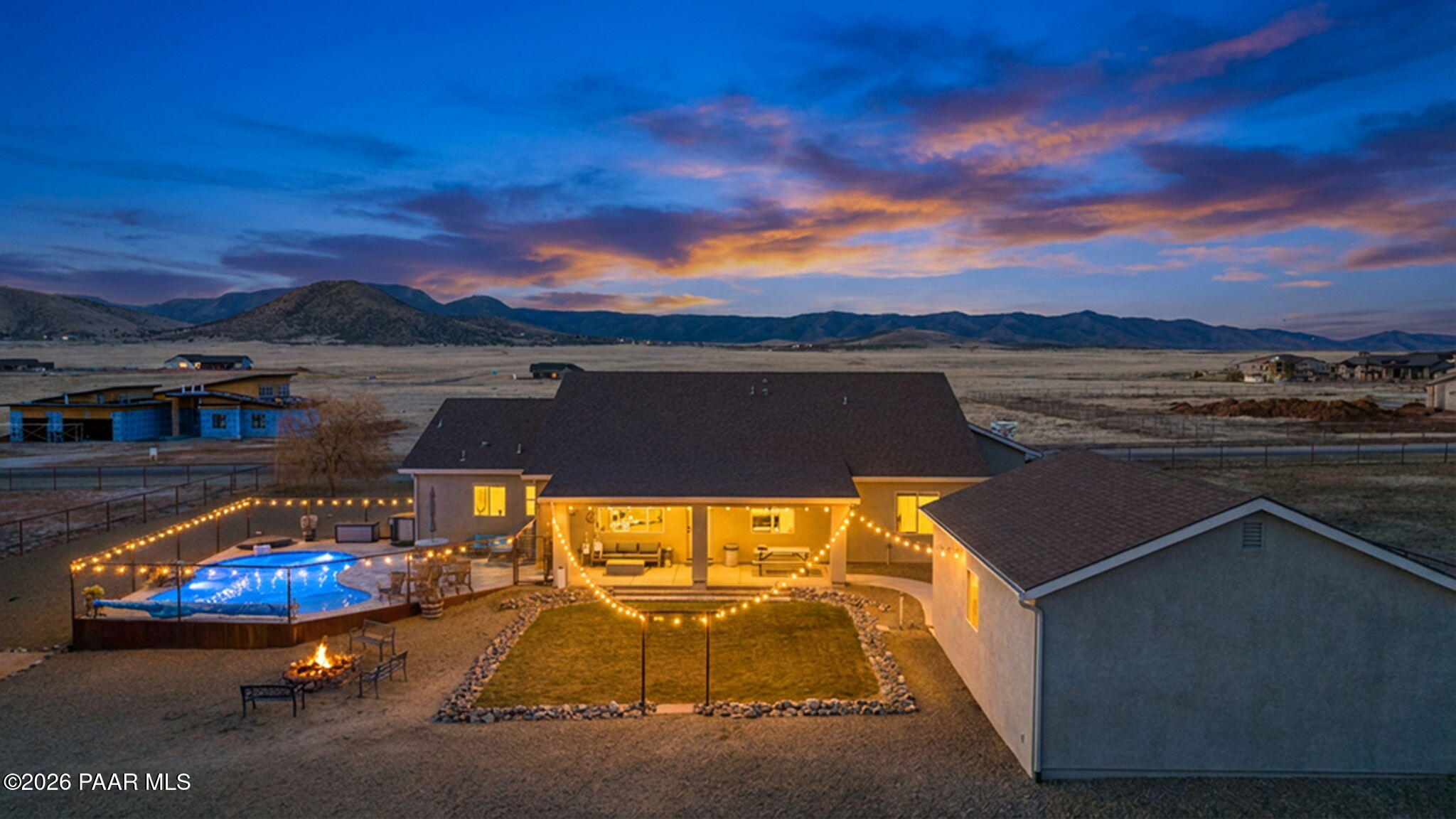 Immaculate 2,300 sq ft, 4-bedroom, 2-bath residence set on two beautifully purposed acres, offering an exceptional blend of refined living and rural functionality. Thoughtfully designed with comfort and versatility in mind, this property is truly one of a kind.The open-concept interior is anchored by a stunning kitchen featuring rich custom cabinetry, granite countertops, a spacious island, walk-in pantry, and seamless connection to the living and dining areas--ideal for both entertaining and everyday living.Outdoors, enjoy your own private retreat with a crystal-clear saltwater in-ground pool, expansive patio, and one acre of professionally landscaped grounds, perfect for hosting or unwinding under wide-open skies. The additional acre of pasture provides excellent space for animals, hobbies, or future expansion.Exceptional garage and storage options include an attached multi-car garage plus a 24' x 30' detached garage, ideal for a workshop, recreational vehicles, or extra storage.Offering privacy, space, and resort-style amenities, this remarkable property delivers the rare opportunity to enjoy luxury outdoor living, usable acreage, and a move-in-ready home--all in one peaceful setting.